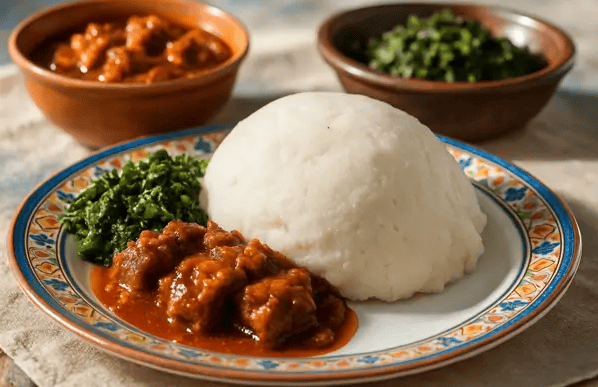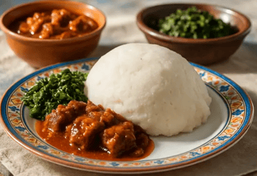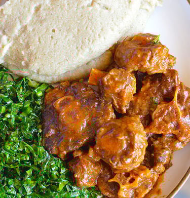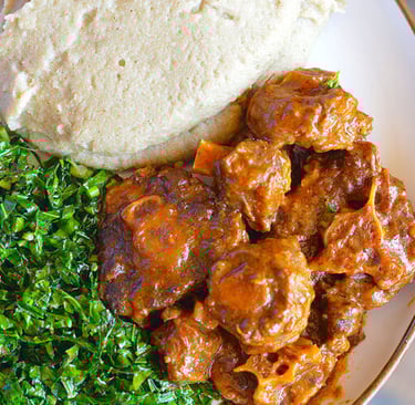 Rich melon seed soup served with pounded yam or fufu.
